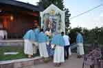 Il 2 luglio, culmine della festa, pregna di eventi, è iniziata alle ore 5 a Chieuti, dopo il raduno dei pellegrini chieutini nella chiesa di S.Giorgio, con il pellegrinaggio animato dal parroco don Antonio Soccio e da fr. Antonio Belpiede (venuto da Roma per partecipare all’evento) lungo la provinciale 44 per riportare il quadro della Madonna in convento. All’arrivo, per la prima volta, la messa delle ore 6, dedicata ai chieutini, è stata concelebrata dai due sacerdoti nel giardino francescano per poter accogliere tutti i convenuti. Le altre messe sono state celebrate: alle ore 7 dal guardiano fr. Giuseppe Tortorelli, alle 8 dal vicario fr. Gianpiero Ritrovato, alle 9 da fr. Luigi Ciannilli, alle 10,30 da don Stefano Tronco e alle 17,30 da fr. Cipriano de Meo.