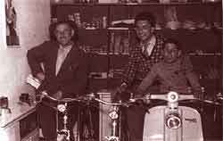 Il veicolo più semplice che dà alI'uomo la possibilità di guidare in piena autonomia con le sue forze muscolari un mezzo meccanico, è la bicicletta. Da noi questo sano mezzo di trasporto non ha mai avuto un grosso utilizzo, non per la posizione geografica del nostro agro (anzi il tessuto urbano di Serra è quasi pianeggiante), ma per una ristretta mentalità atavica, oggi più che mai conservata per via della comoda motorizzazione. La bicicletta è un giocattolo riservato ai giovanissimi come premio scolastico largamente usato soprattutto nei mesi estivi. Sono rari gli adulti, specie del gentil sesso, che usano abitualmente questo mezzo ecologico per spostarsi nel centro urbano. Altri, invece, Io utilizzano in casa o in palestra sotto forma di cyclette. Un tempo questo veicolo a due ruote era un miraggio per molti. Nel ventennio fascista gli squadristi l'ebbero in dotazione per i loro spostamenti. Il regalo ambito dai figli di famiglie abbienti era la bici con le gomme a palloncino montate su cerchioni di legno. Altri si accontentavano di noleggiarla da Giovanni Facciolli. Verso la fine degli anni venti, quando le strade erano polverose e dissestate, spesso capitava al ragazzo, che aveva affittato la bici per un'ora, ma l'aveva tenuta per tutta la giornata, di sentirsi dire dal padrone:- Bèlla ccàtt ème fàtt! Ne n' sàle mà ripurtète mò, mè pure senzè u chàmpànàll, cà furcèllè rótt,, chi róte buchéte, e cà chèténe schéppete.- Anche Ettore Cavalli e un certo De Rosa riparavano e noleggiavano le biciclette. Era un evento quando riuscivano ad ordinarne, su commissione, qualcuna nuova. Anni dopo anche Ernesto Mauceri intraprese questo lavoro. Nel dopoguerra ci fu il rilancio della bicicletta. Nel 1949 un meccanico di San Severo, Luigi Ciro Pennelli, si stabilì a Serracapriola aprendo in via Imbriani un'officina per la riparazione e il noleggio delle biciclette, a 100 lire al giorno. La passione per il mestiere, che inculcava anche ai figli, e le sue capacità imprenditoriali dettero subito buoni risultati. Dopo qualche anno si trasferì in un locale più spazioso di Corso Garibaldi dove oltre a vendere biciclette nuove Benotto, Bianchi, e Narsete_Zanconi di Macerata, di cui aveva l'esclusiva, cominciò ad attrezzarsi di pezzi di ricambio, indispensabili e per le riparazioni e per il montaggio sui vari telai in modo da ottenere dei veicoli nuovi. Qui i figli di Luigi con creativita sfornavano modelli innovativi e personalizzati per appagare le esigenze dei clienti. Michele chiamò zebrata la bici da lui verniciata a strisce nere sullo sfondo bianco. Saverio mise a punto uno scatto silenzioso, eliminando il rumore che si sente quando il veicolo va a ruota libera. Ma l'invenzione da brevettare e ancora nel cassetto. lntanto la Ditta Pennelli, oltre a noleggiare e a vendere le biciclette da passeggio anche fra i braccianti agricoli, cominciò a diffondere quelle da corsa fondando una società sportiva dove correvano i promettenti ciclisti Gabriele Ferrante e Lorenzo Gatta. Poi spostò l'officina prima in via Malpighi, e dopo alcuni anni in via Sant'Angelo. Il noleggio ormai per via del benessere cedette il passo alIa vendita delle biciclette. La motorizzazione fece capolino nella Ditta Pennelli e i ciclomotori e le motorette s'integrarono bene fra le cugine povere lasciando a queste la loro intramontabile identità. Anche i fratelli Fortunato e Michele di Cesare ebbero un ruolo importante come meccanici e commercianti di biciclette. scouter e motociclette nella loro officina di Corso Garibaldi n.162.