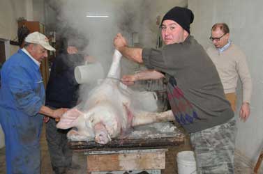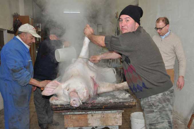 Questanno (febbraio 2012) a Serracapriola sono stati ammazzati da privati circa 20 maiali con laiuto di giovani norcini ccidèpórce che fanno questo mestiere come secondo lavoro.