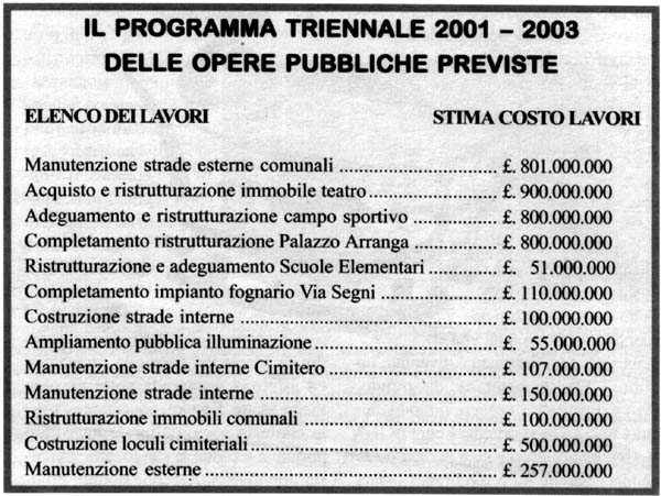 all'oggetto "Programma triennale opere pubbliche 2001/2003