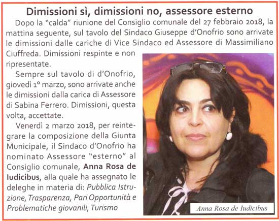 Con sette voti favorevoli e quattro contrari (Camporeale, Francesco di Siro, Vincenzo Ferrero e Vittorio Presutto) invece, è stato approvato Il piano finanziario del servizio di gestione dei rifiuti solidi urbani per l'anno 2018. Nel corso della discussione che ha preceduto la votazione, il Sindaco Giuseppe d'Onofrio ha riferito che rispetto all'anno passato, vi è per il Comune un risparmio di circa 15mila euro, che sarà “spalmato” a vantaggio dei contribuenti. Critiche al piano finanziario ed all'Amministrazione sono giunte da Camporeale, per il quale, la minima riduzione del corso del servizio sarebbe dovuta solo alla buona percentuale di raccolta differenziata. Dal canto suo, intervenendo sulla questione, Presutto ha auspicato la nascita di una cooperativa locale di servizi per la gestione del verde pubblico, cimitero, ecc. ed invitato l'amministrazione comunale a trovare un modo per “vendere in proprio" i rifiuti riciclabili (vetro, carta, plastica...), così da ricavarne un guadagno, e a fare al più presto la gara per il nuovo affidamento del servizio. In replica, il sindaco ha assicurato che entro il 2018, la gara sarà svolta.