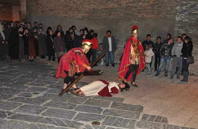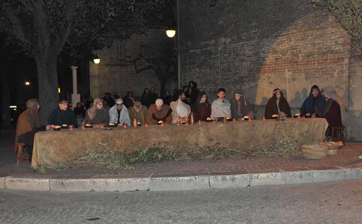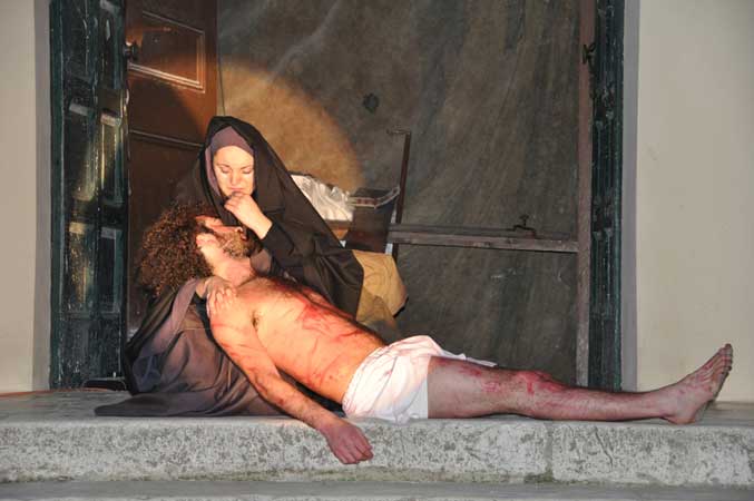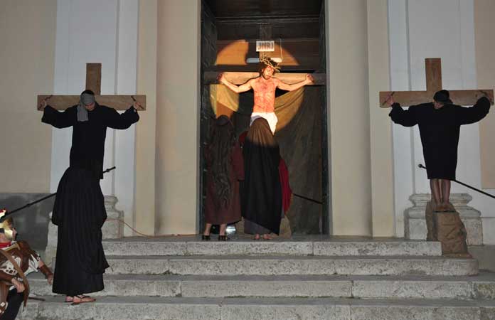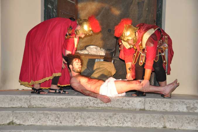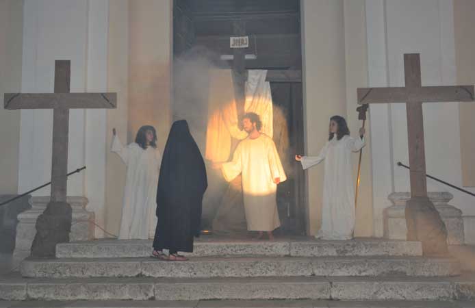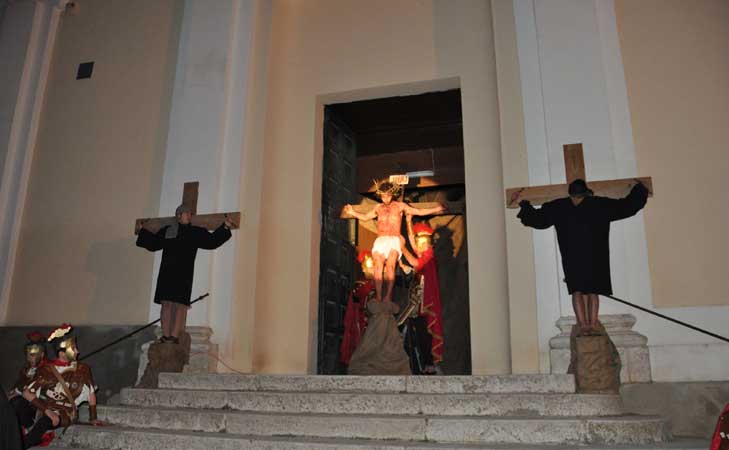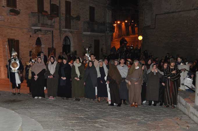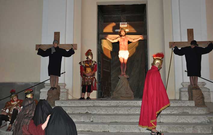 Alle ore 20 è tornata, dopo due anni di assenza, alla sua 7ª edizione, la sacra rappresentazione vivente PASSIONE E MORTE DI NOSTRO SIGNORE GESÙ CRISTO, realizzata questanno dallunione dei due gruppi giovanili: la Gioventù Francescana e il nuovo Gruppo Giovani - Carlo Acutis, parrocchiale, nato nel dicembre 2012.