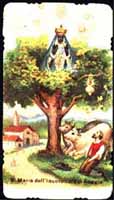 fra i rami di una quercia una statua della Madonna con il Bambino,