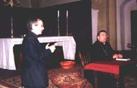 In modo particolare, devo personalmente ringraziarla, perché ho sentito la sua presenza e il suo sostegno al mio fianco quale parroco di questa comunità, apprezzandola soprattutto come sacerdote con la sua preghiera condivisa, in particolare con la recita del Santo Rosario per la pace in Convento e l'adorazione eucaristica per le vocazioni sacerdotali-religiose presso la Cappella delle nostre Suore e con la comunicazione di pezzi della sua vita fatta ai giovani, ai ragazzi e alle famiglie visitate. Mi auguro, eccellenza, che tutto questo continui attraverso il dialogo sempre aperto e franco senza interferenze, perché possa essere difesa la verità e testimoniata la perfetta comunione della chiesa impegnata nell'annuncio dell'Evangelo a questa Comunità locale. A nome di tutta la Comunità pertanto sento di chiederle che venga incrementato e portato avanti il progetto pastorale dell'unità ecclesiale inaugurato tre anni fa: pur nel rispetto e nella valorizzazione delle diverse realtà esistenti sul territorio in quanto costituiscono una vera ricchezza. La comunità parrocchiale, sotto la presidenza nella carità e nell'unità di un solo parroco, sia il centro convergente e il fulcro propulsore della vita ecclesiale.