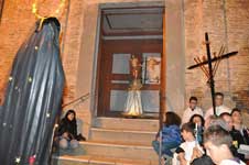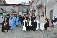 Prosegue la Via Crucis lungo il Corso Garibaldi: vengono declamate le stazioni ai balconi di Borgo Oriente e di Borgo Occidente, segnalati dalle più belle coperte dei corredi.