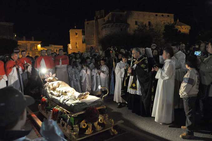 Il parroco don Renato Orlando, oltre alle mansioni di confessore professate nella chiesa della Trinità, ha organizzato con la comunità parrocchiale di S.Maria in Silvis e S.Mercurio M. La Via Crucis con le statue della Passione per le strade del paese.