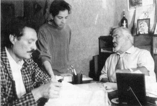 Renato Ciarallo, poliedrico collaboratore di Iesu, qui con Chicco Salimbeni e Mario Adorf sul set del film "Abissinia" fìrmato dal regista Francesco Martinotti. Nel cast del film, girato in parte alla marina di Serracapriola nell'anno 1992, anche Milena Vukotic, Grazyna Szapolowska e Luca Zingaretti, protagonista deIla fortunata serie televisiva "Il commissario Montalbano".