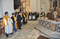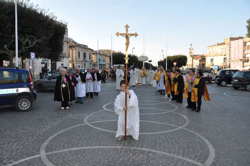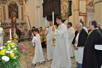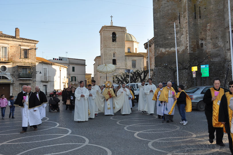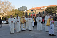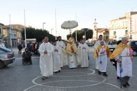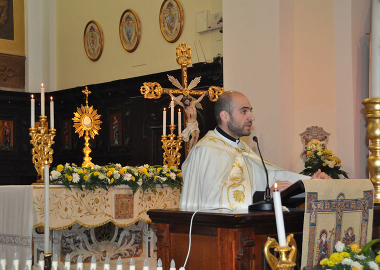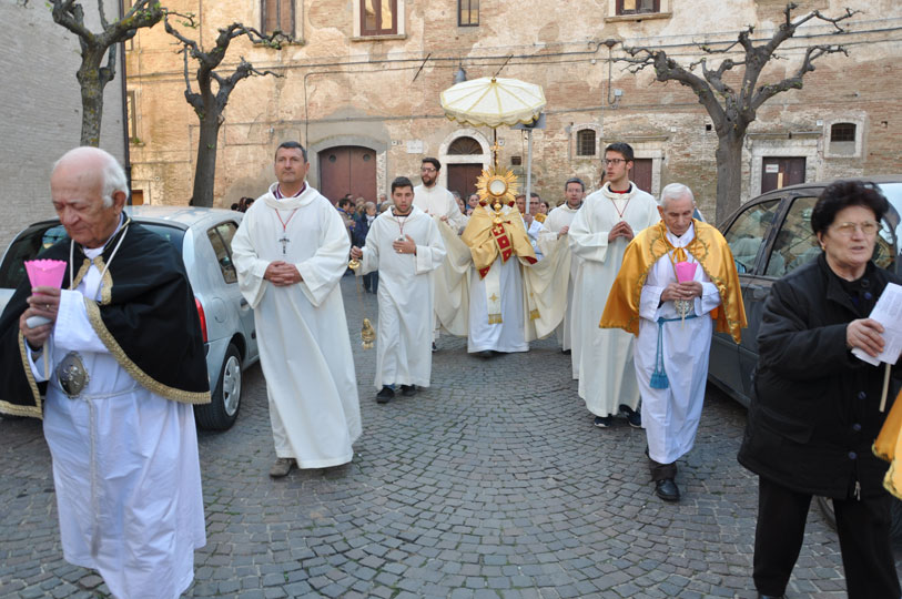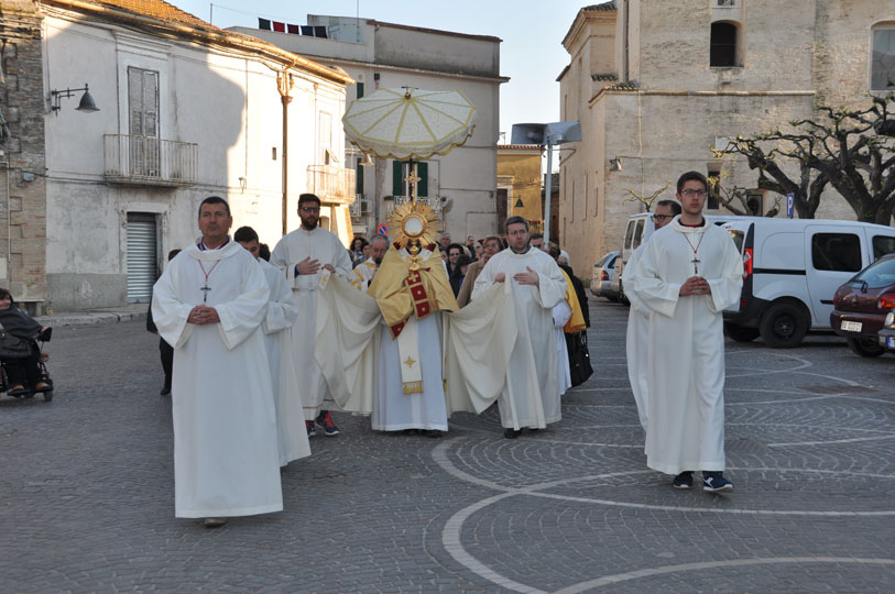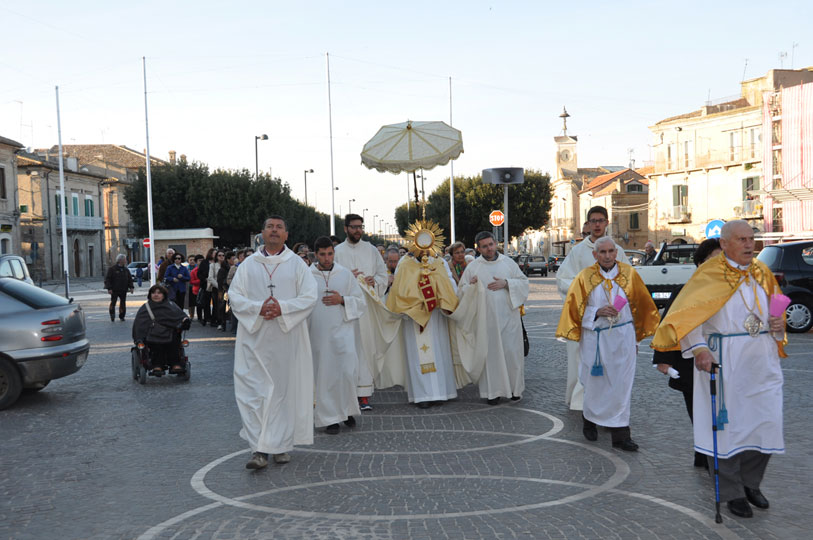 A conclusione delle Quarantore don Francesco ha portato il SS. Sacramento in processione, accompagnato dai missionari, i fedeli, le due confraternite del SS. Sacramento e della Buona Morte, e i membri delle varie associazioni.