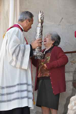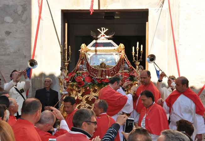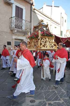 Nel pomeriggio alle ore 17,30 sono stati portati in processione per le vie del paese lurna e il braccio reliquario dargento di S. Fortunato con laccompagnamento delle autorità civili e militari, della banda musicale e di numerosi fedeli. La processione si è conclusa in piazza V.Emanuele III con la concelebrazione eucaristica presieduta da don Luciano Pescatore.