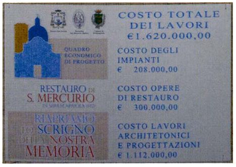 Ognuno può prender atto del lavoro febbrile e appassionato, durato mesi e giorni, di quanti hanno redatto e firmato i meticolosi progetti di restauro e, soprattutto di chi, all'ombra del campanile ha curato, intessuto rapporti e percorso strade a volte impensate, irte di ostacoli e difflcollà per riaccendere in tutti noi la speranza certa di una risurrezione non solo delle belle pietre della chiesa di san Mercurio, ma di una chiesa viva, di cui mi auguro ognuno voglia essere protagonista, e non semplice spettatore, il curioso d il ciarlatano di turno, apportando il suo fattivo contributo di apprezzamento e gratitudine non escluso quello economico. Una chiesa e una casa dalle porte aperte su tutta una città!