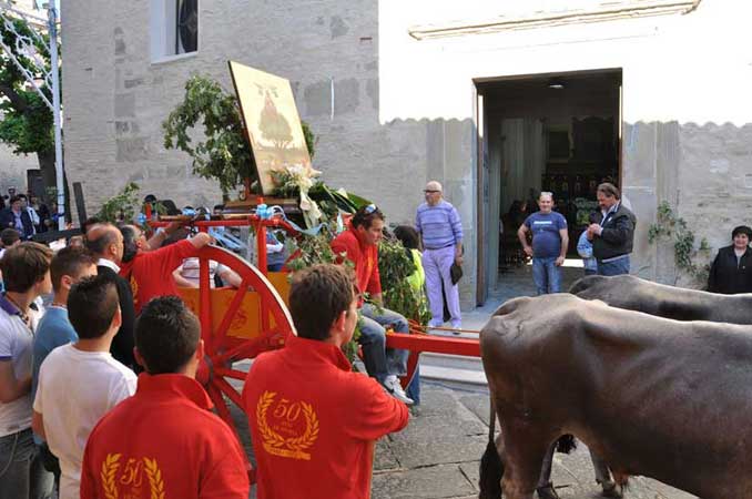 Nel sabato 28, dedicato alla Memoria dell’Apparizione, dopo il rito della benedizione dei ramoscelli di quercia durante la messa delle ore otto, nel pomeriggio alle ore 16,30 la comunità parrocchiale si è riunita al Passo S.Giacomo con il parroco don Renato Orlando per il pellegrinaggio penitenziale. La peregrinazio, guidata dal chierichetto con la croce, era preceduta a distanza dal carro trainato da due buoi che portava l’icona dell’Incoronata, guidato dal gruppo dell’associazione “La Cittadella”, vincitrice della “corsa dei carri” del 22-04-2012 nella festa patronale di San Giorgio a Chieuti. Spunto folcloristico, grazie ai chieutini, a memoria dell’apparizione. Con l’arrivo nella chiesa di S.Maria in Silvis si è celebrato il rito del Canto dell’Akatistos.