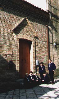 Alcuni scaut davanti all'Ufficio Parrocchiale e Redazione la Portella.