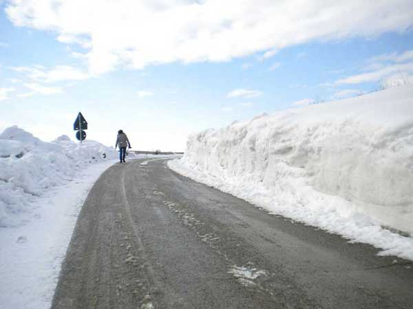 Venerdì 10, torna il cielo coperto, laria è rigida ma calma, non cè vento. Alle ore 11 circa inizia a nevicare di nuovo. Sono le 16,15 e ai fiocchi si alterna un nevischio sottile, granuloso. Sciòcch è céchèpèquere. I fiocchi silenziosi coprono di nuovo, rendendola soffice, la superficie dei vecchi cumuli di neve e ghiaccio dei giorni scorsi. Sono le ore 18 e continua a nevicare. Alle 19 smette.