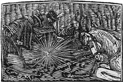 Pria giungesse in San Severo questa portentosa procella si vedeva avanti una densa nube, in cui pareva si movessero molti serpi di fuoco tant'erano i lampi, e i tuoni parevano che conducessero un'esalazione infuocata a guisa di lancia che teneva la punta verso il cielo e il calce verso la terra, nè differiva cosa alcuna dalla forma di una lancia, ma di grande spazio larga lunga. Giunse questa spaventosa procella in San Severo con tanti grandi spessi lampi, e grossi tuoni, e saette, che andavano cadendo di passo in passo, che ognuno raccomandandosi a Dio credeva in quel punto morire. Una di queste saette ferì nella persona il Reverendissimo D. Luigi Ferrara Arciprete della Cattedrale, che stava nella sua casuccia di legno, che noi con nuovo vocabolo chiamiamo baracca, il quale di subito morì. Fu la saetta di quella specie che gli Astrologi chiamano turbine, che brucia l'interiore e non l'esteriore, e !ascia il misero a chi tale sventura, nel modo che si ritrova, e resta leggiero il cadavere come una piuma. Questo inopinato ed acerbo caso finì di riempire i petti de' restanti di spavento e timore.