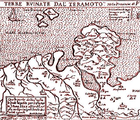 Nel 1627 un’onda gigante colpì il Gargano: i morti furono 4500. La furia delle acque si scagliò contro il tratto di costa prospicente il lago di Lesina. Le località più danneggiate furono Apricena, Torremaggiore e San Paolo Civitate. «Il terremoto... in Puglia... ruinò affatto le Terre, e Città intiere, con segni prodigiosi, e durò tre hore interpollatamente... In alcuni luoghi... si sentirono voci dolorose, che per il gran timore, e strepitio della gente, non si poté distintamente intendere le parole, in modo che pareva fosse giudizio universale, come fu per quelle povere anime, la quantità delle quali per hora non si può sapere». È la cronaca, in una relazione anonima dell’epoca, del terremoto che nel 1627 colpì il Gargano e la Capitanata: tra l’altro, provocò un’onda gigantesca, simile a quella verificatosi nel Golfo del Bengala, che si schiantò sulla costa settentrionale del promontoro. L’ondata di maremoto si abbattè sul tratto di costa prospiciente il lago di Lesina, il litorale di Manfredonia e la foce del fiume Sangro; e provocò l'allagamento della pianura tra Silvi e Mutignano e l'inondazione delle campagne di Sannicandro Garganico. Morirono almeno 4500 persone, soprattutto a causa dei crolli provocati dalle scosse telluriche. Tuttavia anche lo tsunami ebbe proporzioni notevoli per il Mediterraneo e fu uno dei più potenti che si ricordino. Le cause? «La Puglia - si legge in una relazione del Gruppo nazionale per la difesa dai terremoti (Gndt) e dell’Istituto nazionale di geofisica e vulcanologia (Ingv), realizzata nel 1999 - è caratterizzata da una sismicità di un certo rilievo solo nell’area garganica e nel Foggiano, dove si sono verificati alcuni terremoti di forte intensità con gravi danni e numerose vittime, come in occasione della scossa del 30 luglio 1627 o del 20 marzo 1731». Significativo per quest'area è certamente quello del 1627, per la ricca bibliografia e documentazione esistente - continua la relazione scientifica - In occasione di questo terremoto furono pubblicati i primi esempi di Carta macrosismica, con la rappresentazione degli effetti distinti in quattro gradi». Il sisma ebbe un'intensità massima (complessiva di diverse scosse) dell'XI grado della scala Mercalli. Le località più colpite furono Apricena, Lesina, San Paolo di Civitate, San Severo e Torremaggiore, Serracapriola, dove la maggior parte degli edifici crollarono. Un esempio: a San Severo, racconta ancora l’ignoto cronista seicentesco, «cascò tutta (la città) senza restare in piedi che una sola casa, nella quale vi era una grotta grande, cisterna e pozzo, con mortalità infinita di donne, figlioli, vecchi e altre persone civili, che a quell’ora si trovavano in casa». L'area danneggiata meno gravemente comprese le località costiere del Gargano, fino a Manfredonia a sud ed a Termoli, a nord. Il terremoto fu avvertito a est fino alle isole Tremiti ed a ovest in molte località dell'Appennino dauno e della Campania, compresa Napoli. Ad Apricena morì il quarantacinque per cento degli abitanti, a Serracapriola e a San Paolo di Civitate il trentacinque per cento. «Il terremoto colpì in maniera grave la Capitanata nel patrimonio edilizio e nelle infrastrutture agricole, causando un danno rilevante, che non fu alleviato da adeguate disposizioni amministrative», si legge ancora nella relazione del Gndt. «In alcuni casi - continua - è ricordata l'emigrazione di molte famiglie ed anche di religiosi, da San Severo e zone limitrofe verso località ritenute più sicure. L'effetto demografico di lungo periodo su alcuni abitati fu notevole. A San Severo nel 1637, a dieci anni dal terremoto, le famiglie erano