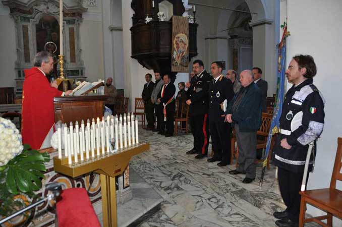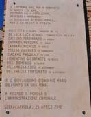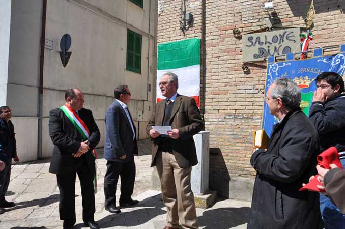 La cerimonia dellinaugurazione della lapide nel giorno della Festa della Liberazione è iniziata con la santa messa celebrata dal parroco don Renato Orlando nella chiesa di S.Maria in Silvis, a cui hanno partecipato: il sindaco Marco Camporeale, il vice sindaco Giuseppe DOnofrio, lassessore Francesco di Siro, i consiglieri di maggioranza Nunzia Morricone e Giuseppe dAdamo, il maresciallo dei carabinieri Fingo Giovanni, il comandante della polizia municipale Giuseppe Castelnuovo, il vigile urbano Paolo Colucci, lo storico locale Stanislao Ricci, Luigi Ciannilli e pochissime altre persone.
