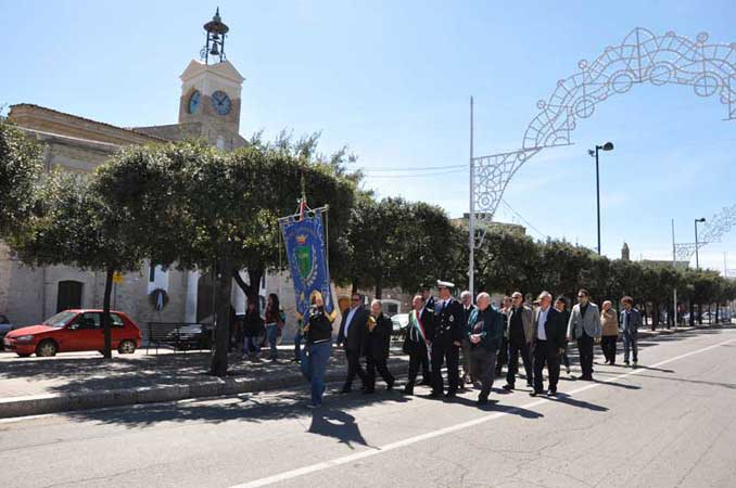 Alla commemorazione religiosa è seguito lintervento del promotore dellevento Luigi Ciannili (consigliere comunale della precedente amministrazione) presso la lapide, coperta dal tricolore, posta allimbocco di via Mercadante (traversa di Corso Garibaldi-Borgo Occidente), dove si è giunti in corteo con il gonfalone del Comune.