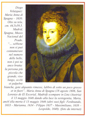 «Quando ando’a’marito» Maria Anna, dalla natia Spagna, viaggiò «all’Austria tramite l’Italia». In Italia si trattenne più mesi visitando luoghi e città, accolta e riverita - ovunque - dai più alti rappresentanti del potere civile e religioso con feste sfarzose e “tavo|e” luculliane.
